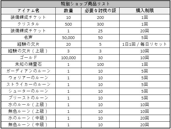 - イベント終了時、未使用の討伐証は数量に比例し1個当たり500ゴールドに自動交換されます。