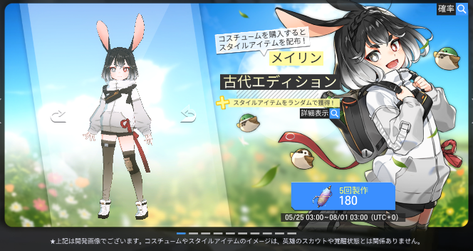- メイリンとルミエの【古代衣装】(通常版1種/限定版1種)が衣装室に追加されます。