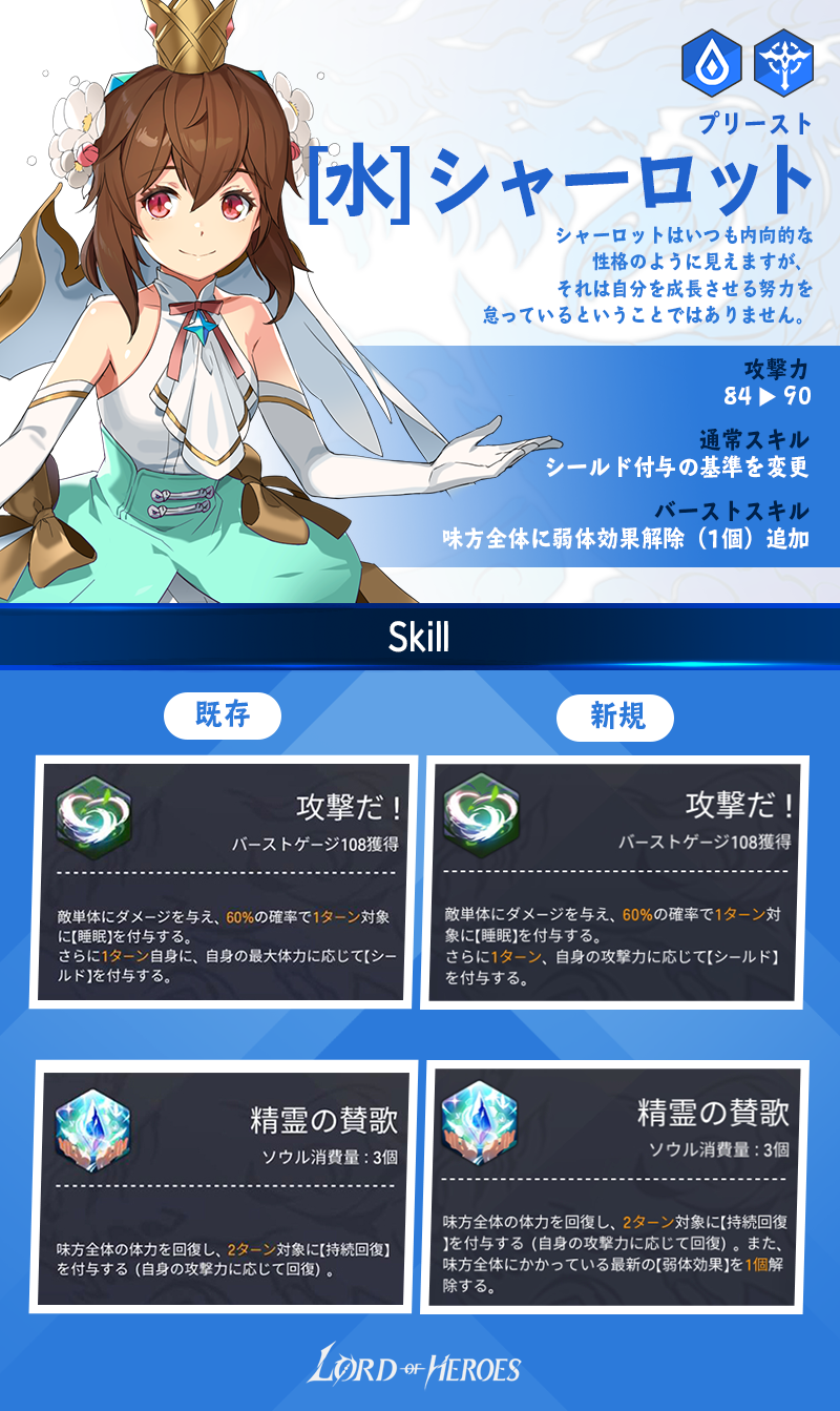 英雄のバランス変更に関して、【水】ヘルガのスキルに一部誤りがあった為、修正いたしました。
