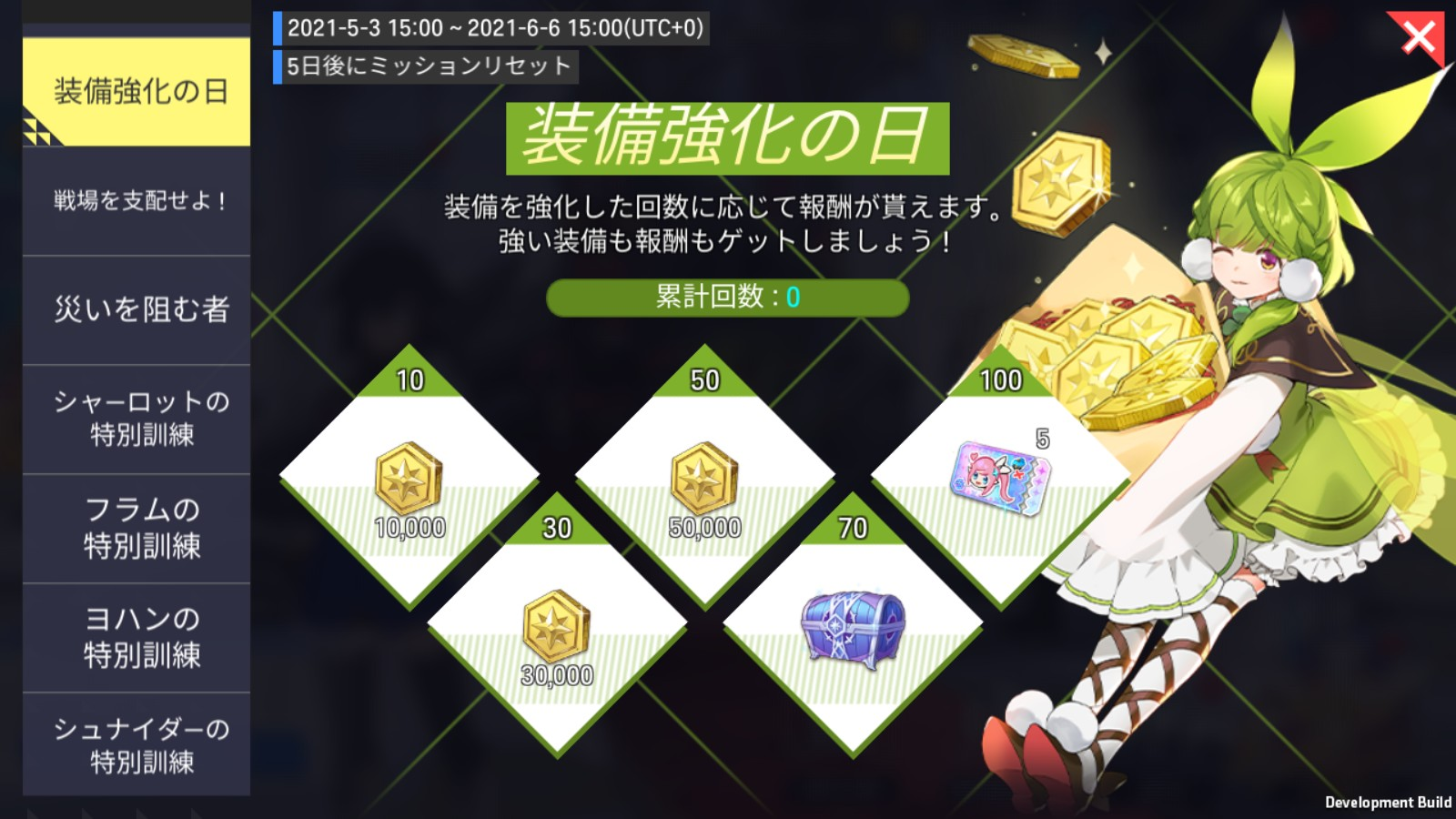 - 装備強化回数によって報酬が支給されます!
