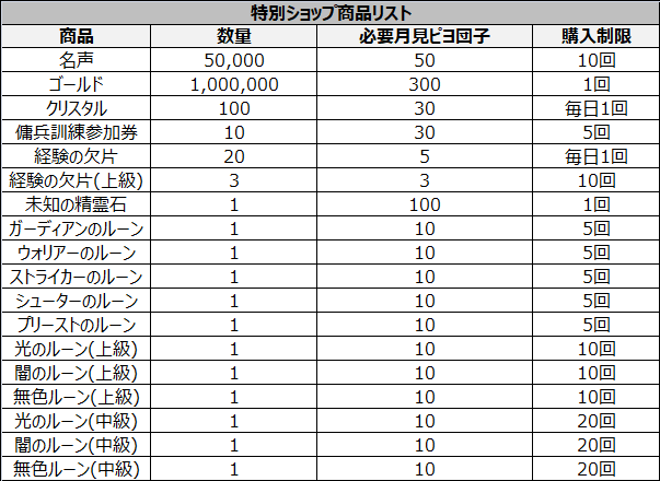 - 「月見ピヨ団子」は「特別ショップ」で様々なアイテムに交換できます。