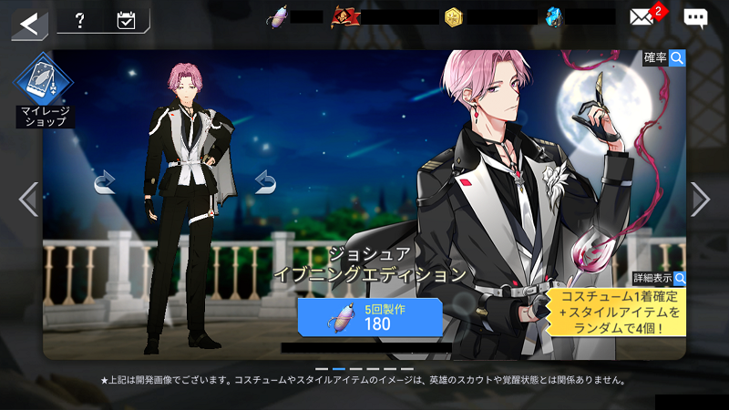 - ジョシュアの[イブニングエディション](通常版1種/限定版1種)が衣装室に追加されます。