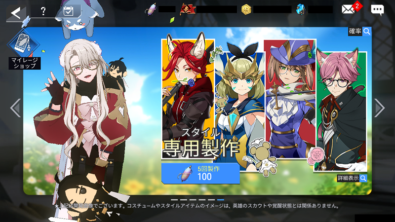 - 新しいスタイルアイテムの追加によって、獲得確率が変更になりました。