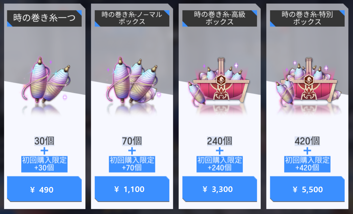 - 初期化対象:12月2日メンテナンス前までに、時の巻き糸「初回購入限定」のおまけ商品を購入したロード