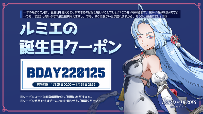 1月25日はルミエの誕生日です!「誕生日クーポン」と「壁紙」🙊 そして、アプリ内でしか見ることができない記念ローディングイメージまで準備しました!💘