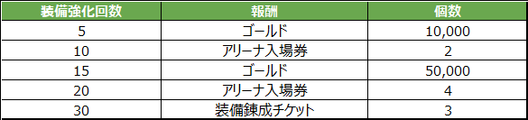 - イベント内容:イベント期間中、毎日装備を強化した回数に応じて報酬を獲得できます。