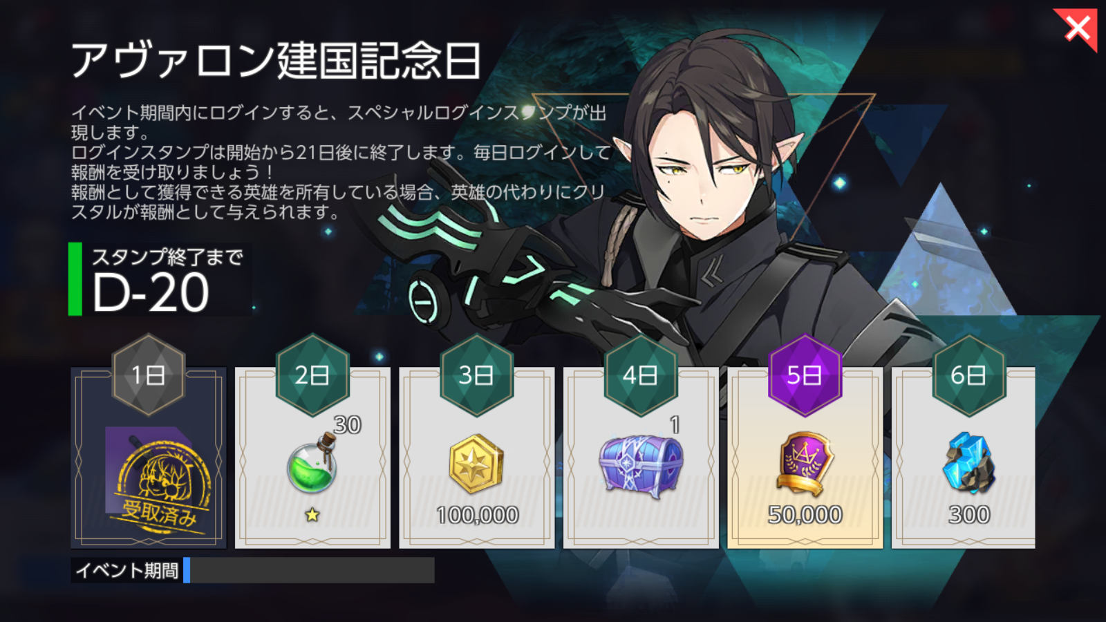 ※イベント受領期間中に接続すると、アヴァロン建国記念日イベントが開始されます。