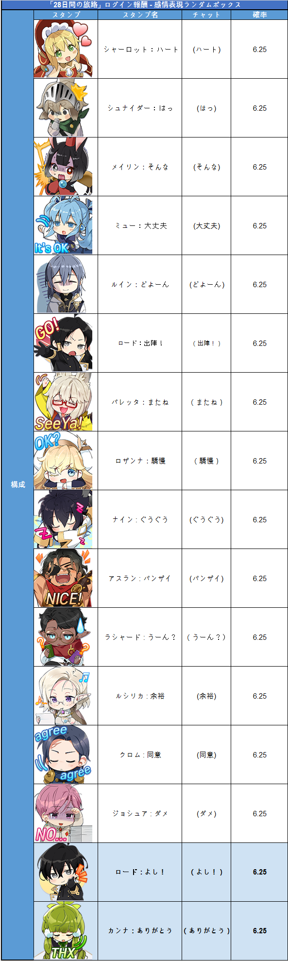 ■ 「28日間の旅路」ログインボーナススタンプ「ロード」「カンナ」追加