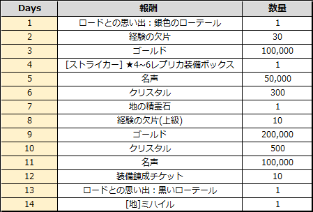 ※ 既に、【地】ミハイルをスカウトされている場合、14日目の特典としてクリスタル1000個を配布いたします。