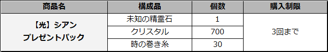 ※当該パック購入時、【光】シアン及び、経験の欠片100個を獲得します。
