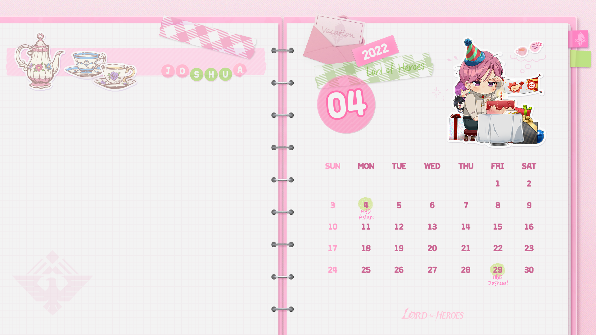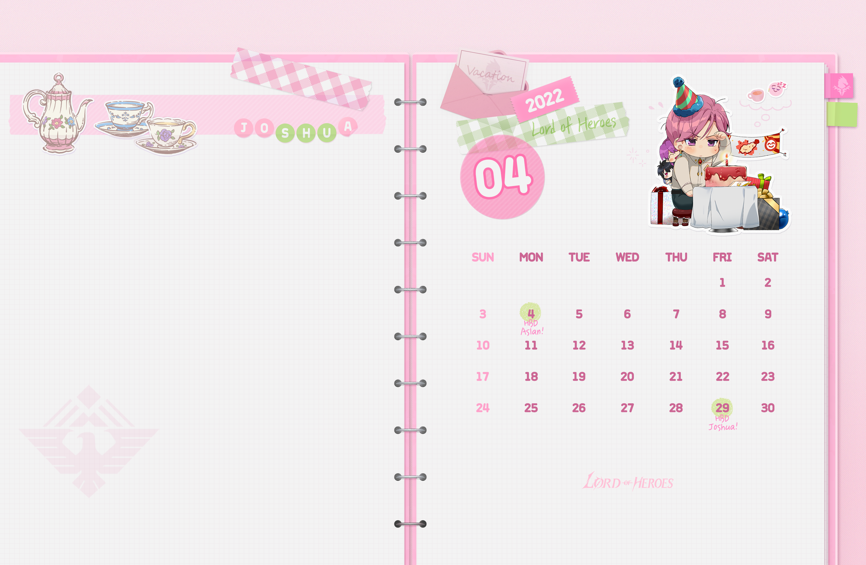 ユニバース 【ロドヒロ壁紙】ロードオブヒーローズ壁紙:#4月号 「ロードオブヒーローズ」運営チーム Read more posts by this author. 「ロードオブヒーローズ」運営チーム 2022年 3月 31日 木曜日 4月に誕生日を迎える英雄が主役の「ロードオブヒーローズ壁紙」が登場!誕生日を迎える英雄と一緒に、楽しい日々をお過ごしください!🗓️ 「アスラン」の壁紙カレンダー ロドヒロ壁紙4月号_アスラン_1920x1080.png 929 KB download-circle ロドヒロ壁紙4月号_アスラン_2880x1880.png 2 MB download-circle ロドヒロ壁紙4月号_アスラン_1440x3200.png 2 MB download-circle ロドヒロ壁紙4月号_アスラン_2048x2732.png 4 MB download-circle 🗓️ 「ジョシュア」の壁紙カレンダー ロドヒロ壁紙4月号_ジョシュア_1920x1080.png 875 KB download-circle ロドヒロ壁紙4月号_ジョシュア_2880x1880.png 2 MB download-circle ロドヒロ壁紙4月号_ジョシュア_1440x3200.png 1 MB download-circle ロドヒロ壁紙4月号_ジョシュア_2048x2732.png 4 MB download-circle