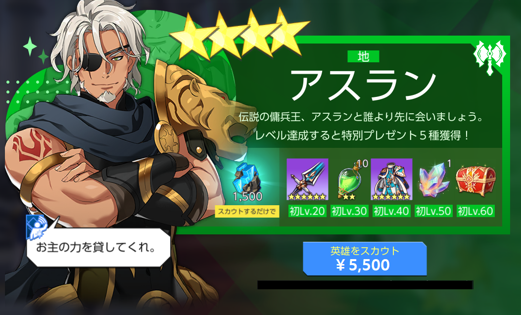 1) 英雄スカウトパック:【地】アスラン(ウォリアー)