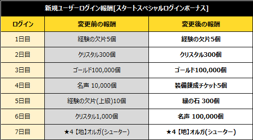 ※ 既にログインボーナスの報酬を受け取っているロードの報酬は変更されず、変更前のログインボーナスが適用されます。
