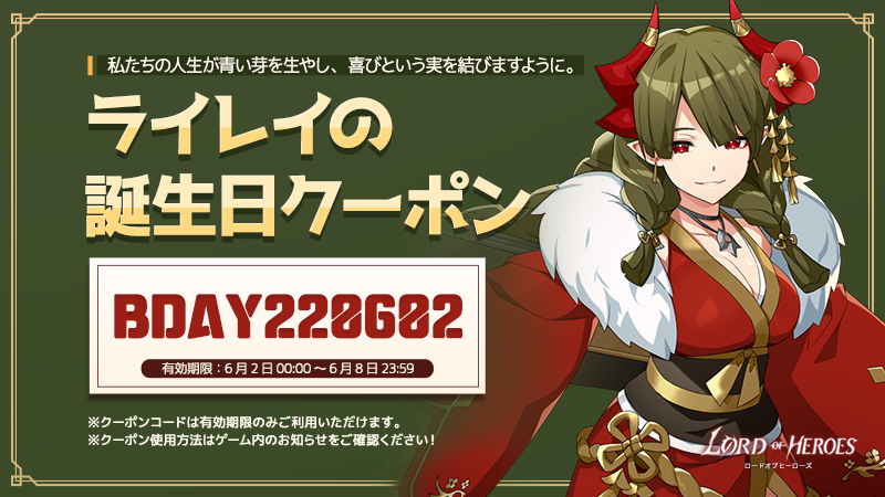 6月2日はライレイの誕生日です!「誕生日クーポン」と「壁紙」🙊 そして、アプリ内でしか見ることができない記念ローディングイメージまで準備しました!💘