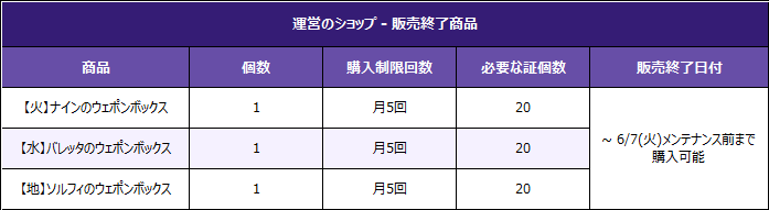 - 販売期間:2022年6月7日(火)メンテナンス後~別途案内時 迄