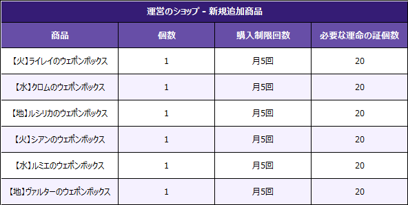 1)「運命ショップ」に新商品6種が追加されます。