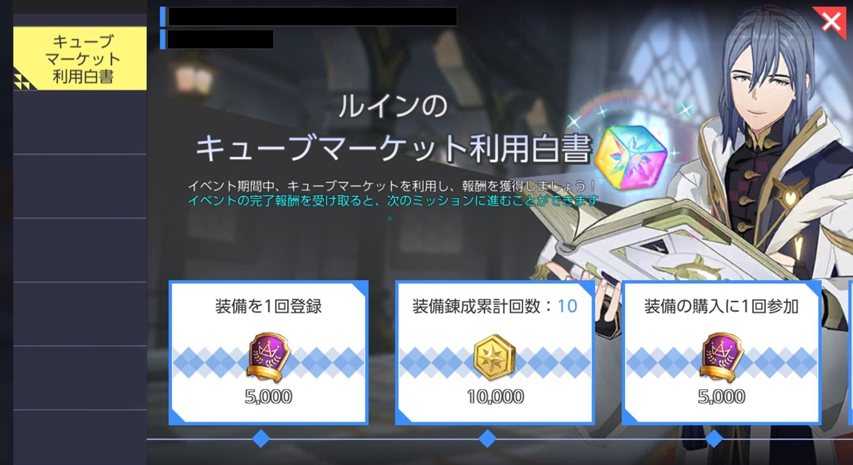 - イベント内容:イベント期間中、キューブマーケットの利用に関するミッションをクリアすると報酬を獲得できます。