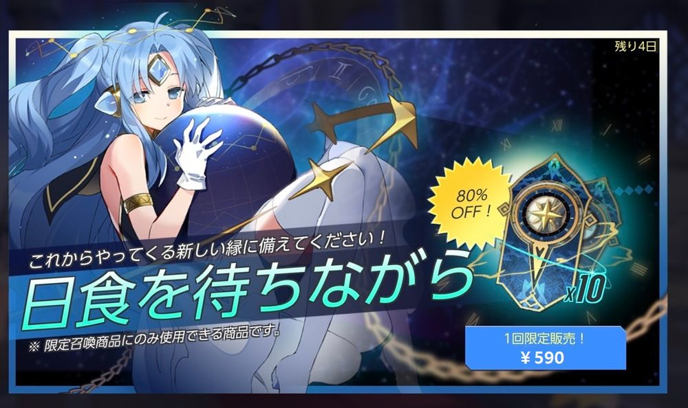 ※ 「日食を待ちながら」パックをご購入いただくと、限定召喚チケット10枚を獲得できます。