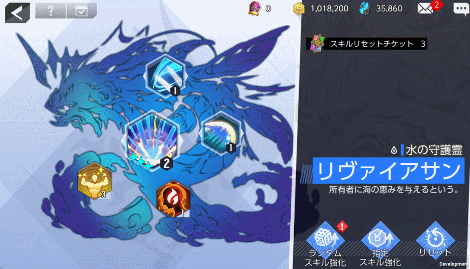 - 「スキルリセット」進行時、スキル強化に使用された精霊石は「未知の精霊石」に還元されます。