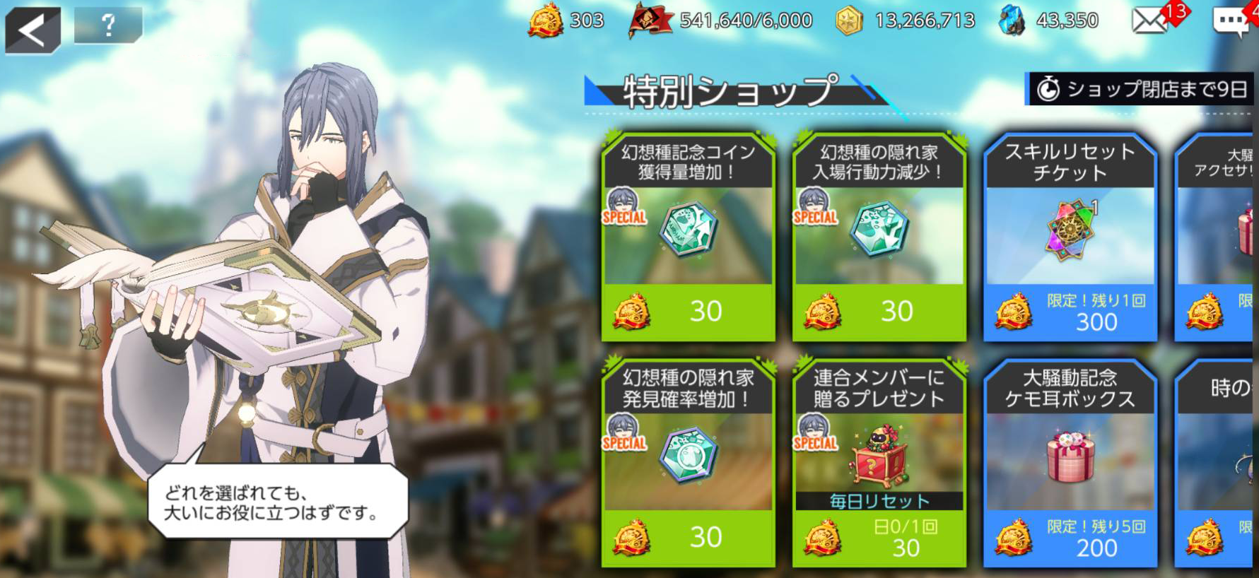 - 幻想種の記念コインを消費して、様々なバフ効果を特別商店で購入できます。