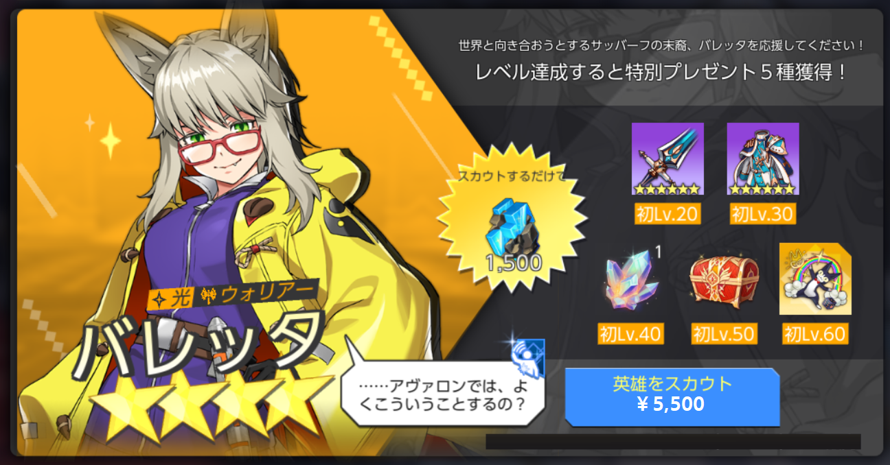 -【光】バレッタは新しく登場する英雄パックを購入してスカウトできます。