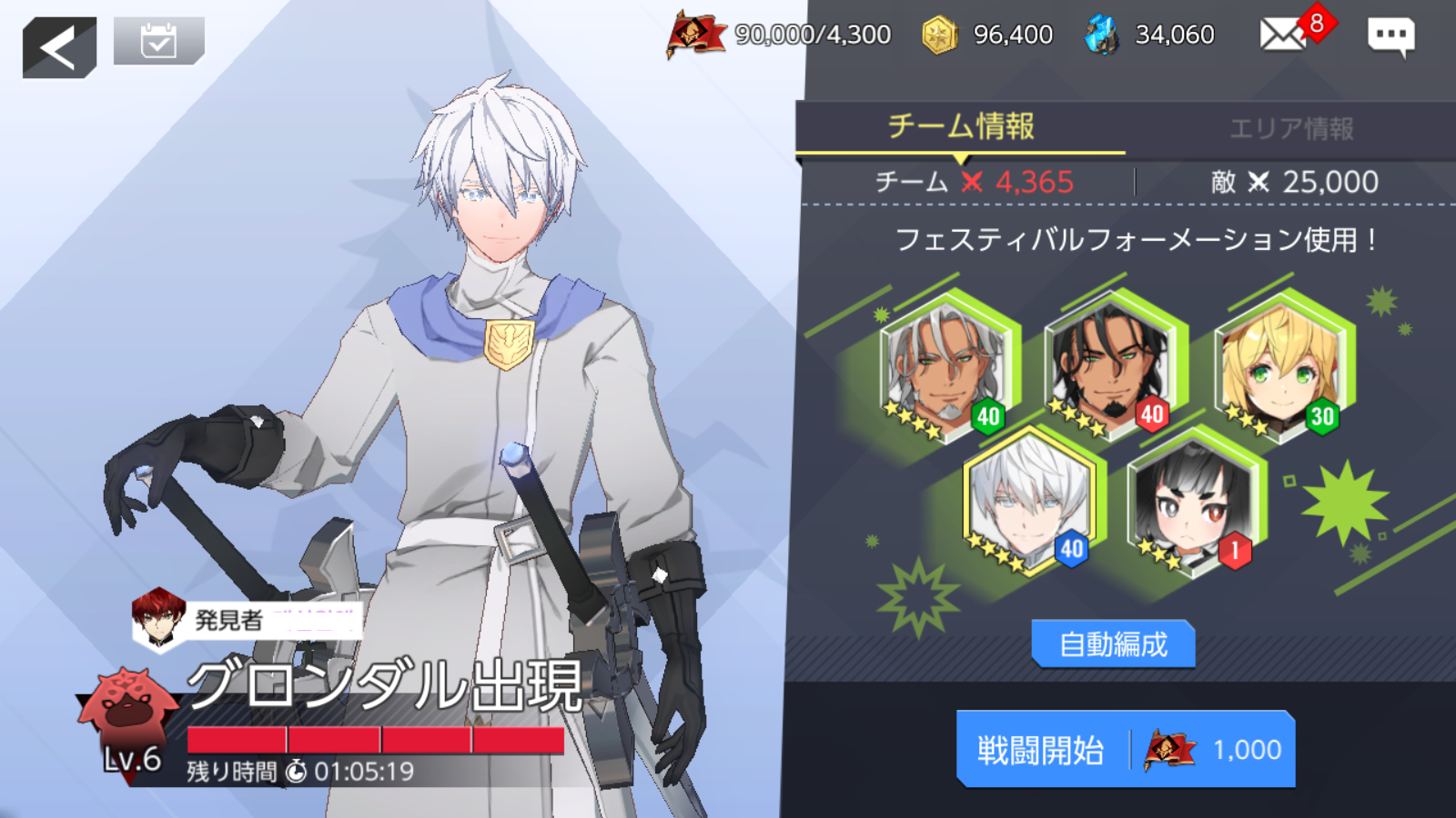 3)編成完了後、「戦闘開始」アイコンをタップすると、幻想種の討伐を開始します。戦闘時、ターンの制限数に到達したり、すべての英雄が行動不能になった場合、戦闘が終了します。