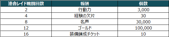 - 連合レイドのプレイ回数に応じて報酬を獲得できます。