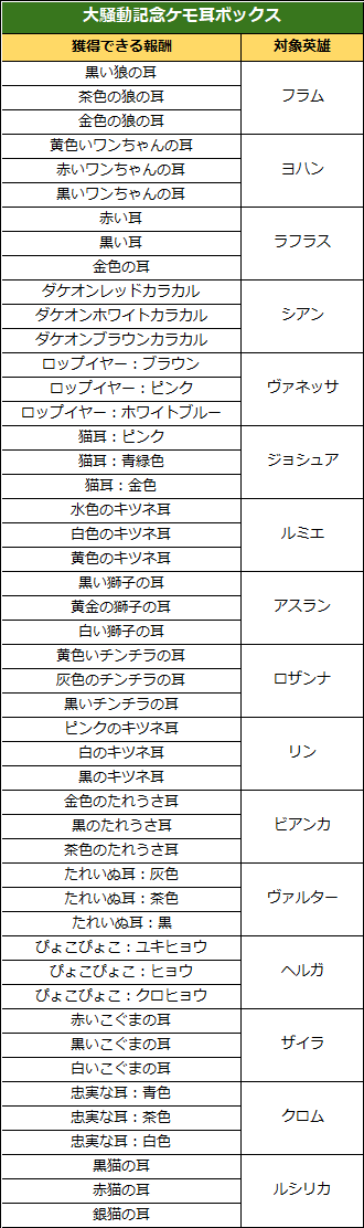 ◈「大騒動記念ケモ耳ボックス」獲得可能報酬