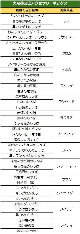 ◈「大騒動記念アクセサリーボックス」獲得可能報酬