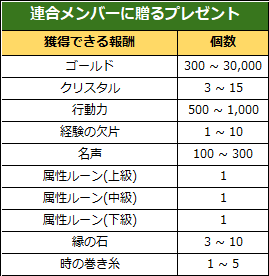 ◈連合メンバーに贈るプレゼント - 獲得可能報酬