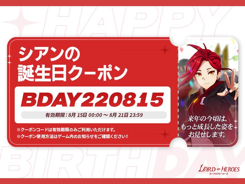 8月15日はシアンの誕生日です!「誕生日クーポン」と「壁紙」🙊 そして、アプリ内でしか見ることができない記念ローディングイメージまで準備しました!💘