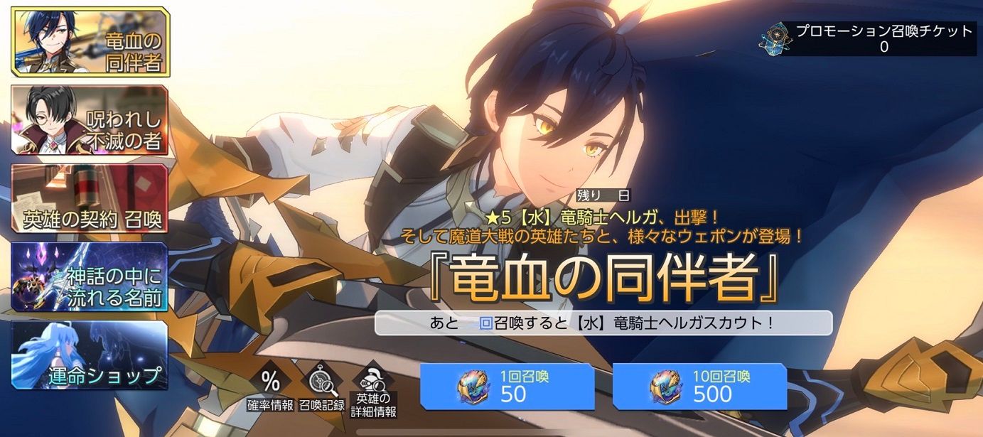 ※プロモーション召喚チケットを用いた召喚は、通常のプロモーション召喚と同じ確率で提供されます。そのため、★5【水】竜騎士ヘルガを必ず獲得できるものではございません。ご注意ください。
