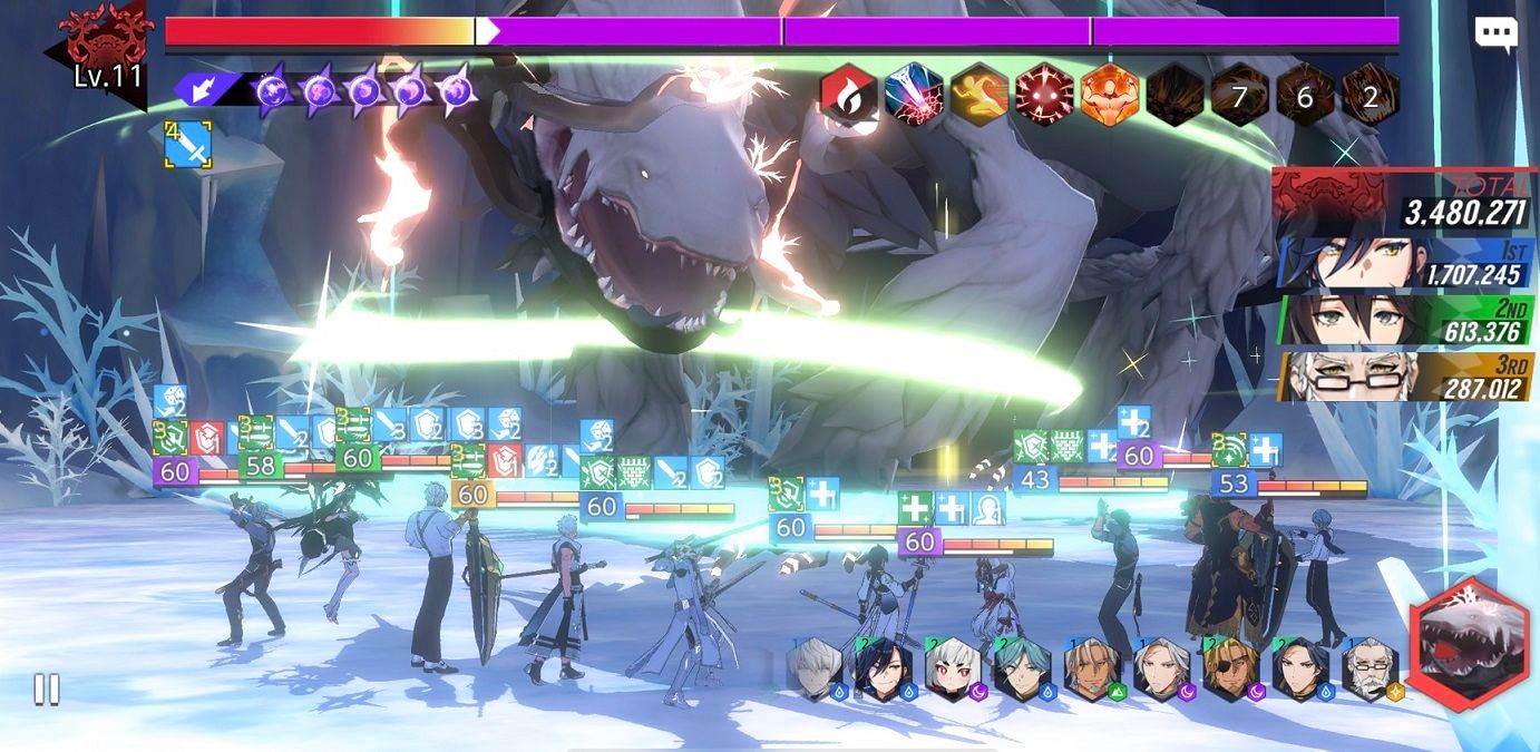 ※英雄の一般、アクティブ、バーストスキルの種類および単一、広域スキルに関係なく、有利な属性の攻撃回数ごとに一定のダメージを与えることができます。