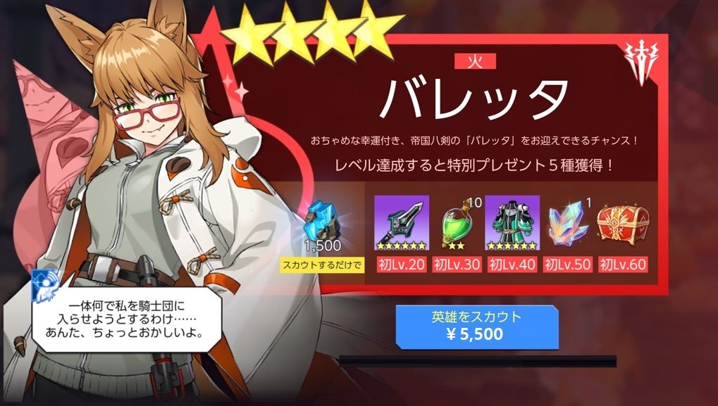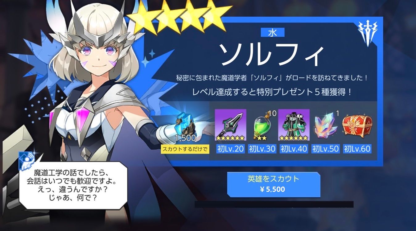 ※スカウト時、クリスタル1,500個を獲得します。