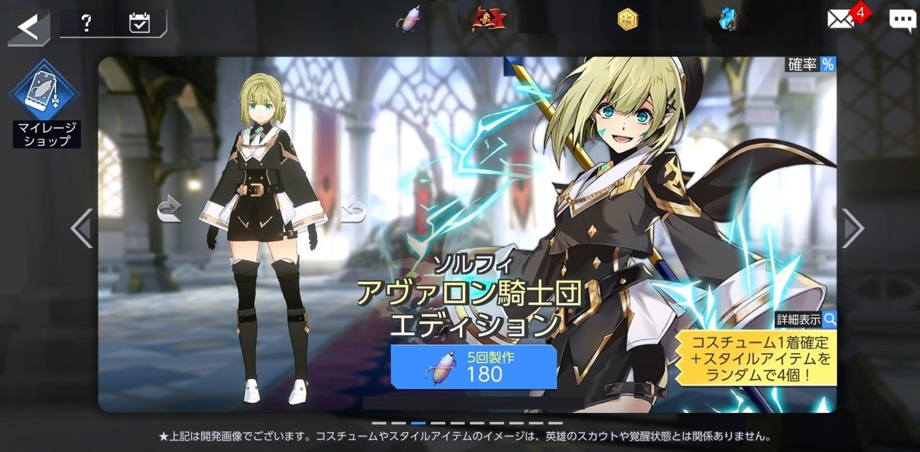 - 衣装室及びマイレージショップに、ソルフィの「アヴァロン騎士団エディション」1種が追加されます。