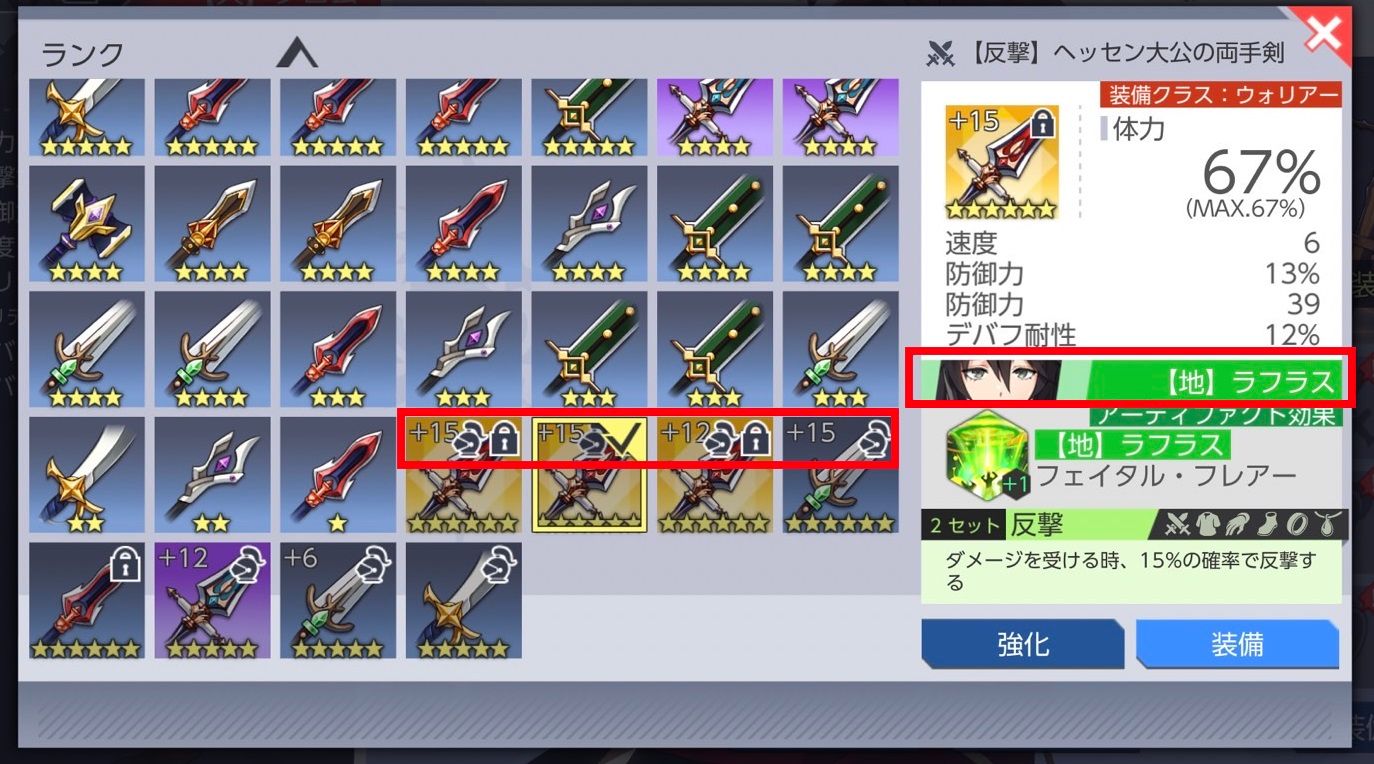 ※自動装着を実行した場合、すでに他の英雄が装備している装備は選択されません。