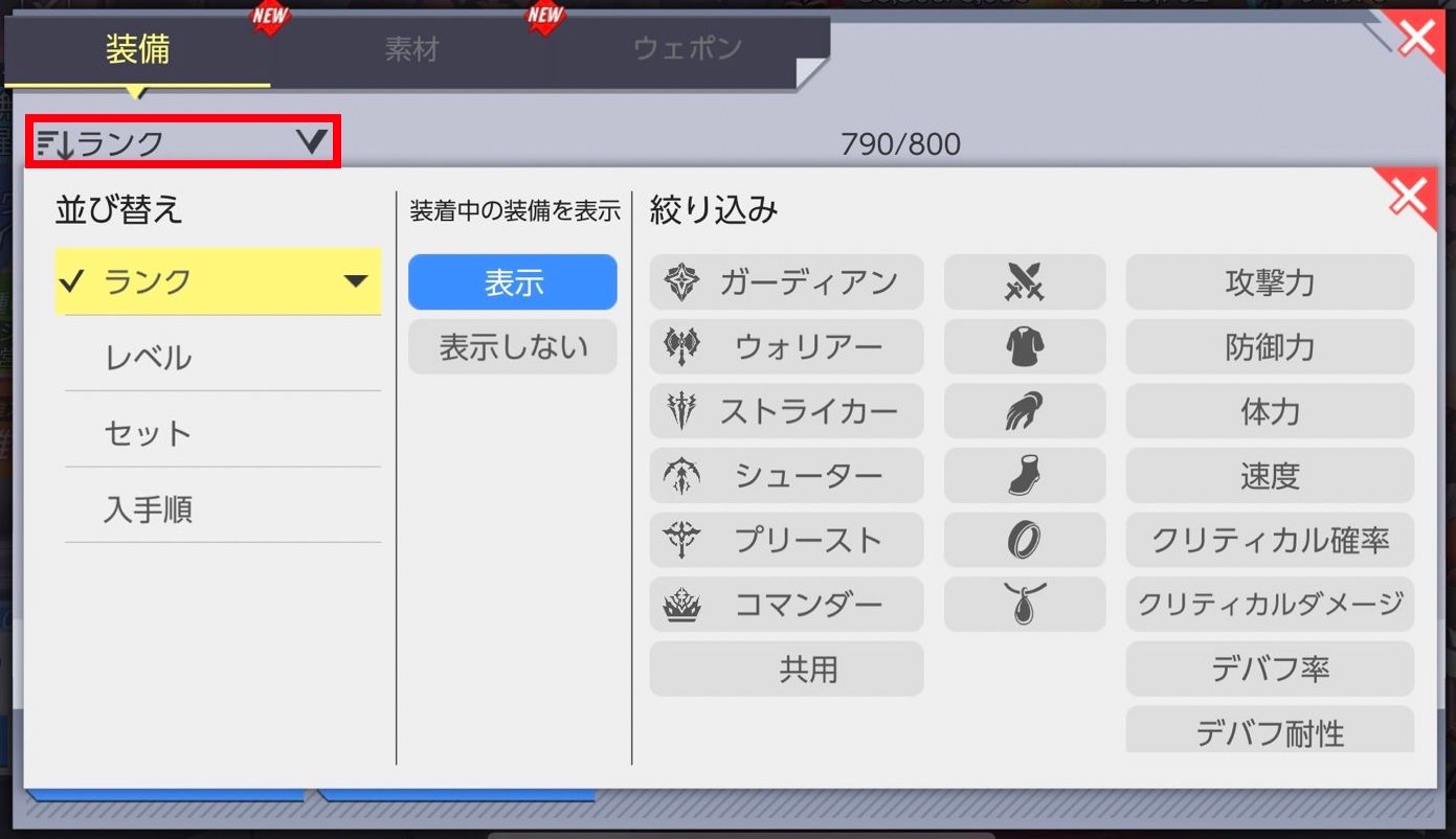 - [持ち物]で保有中の装備を、詳細にフィルタリングして検索できるフィルタ機能が追加されます。