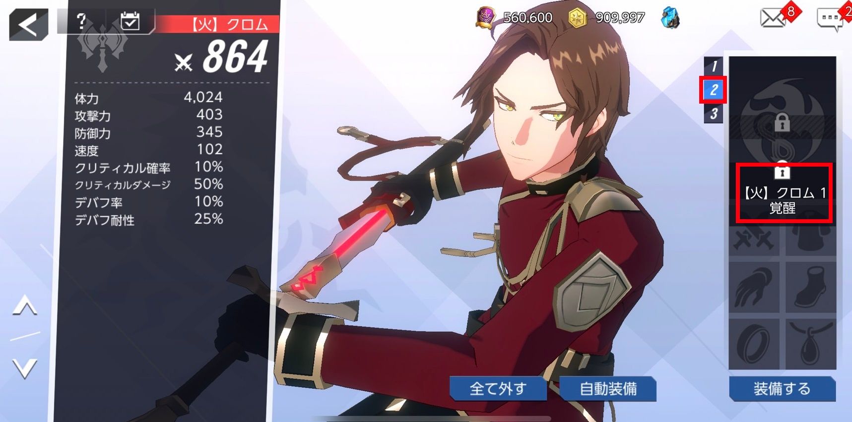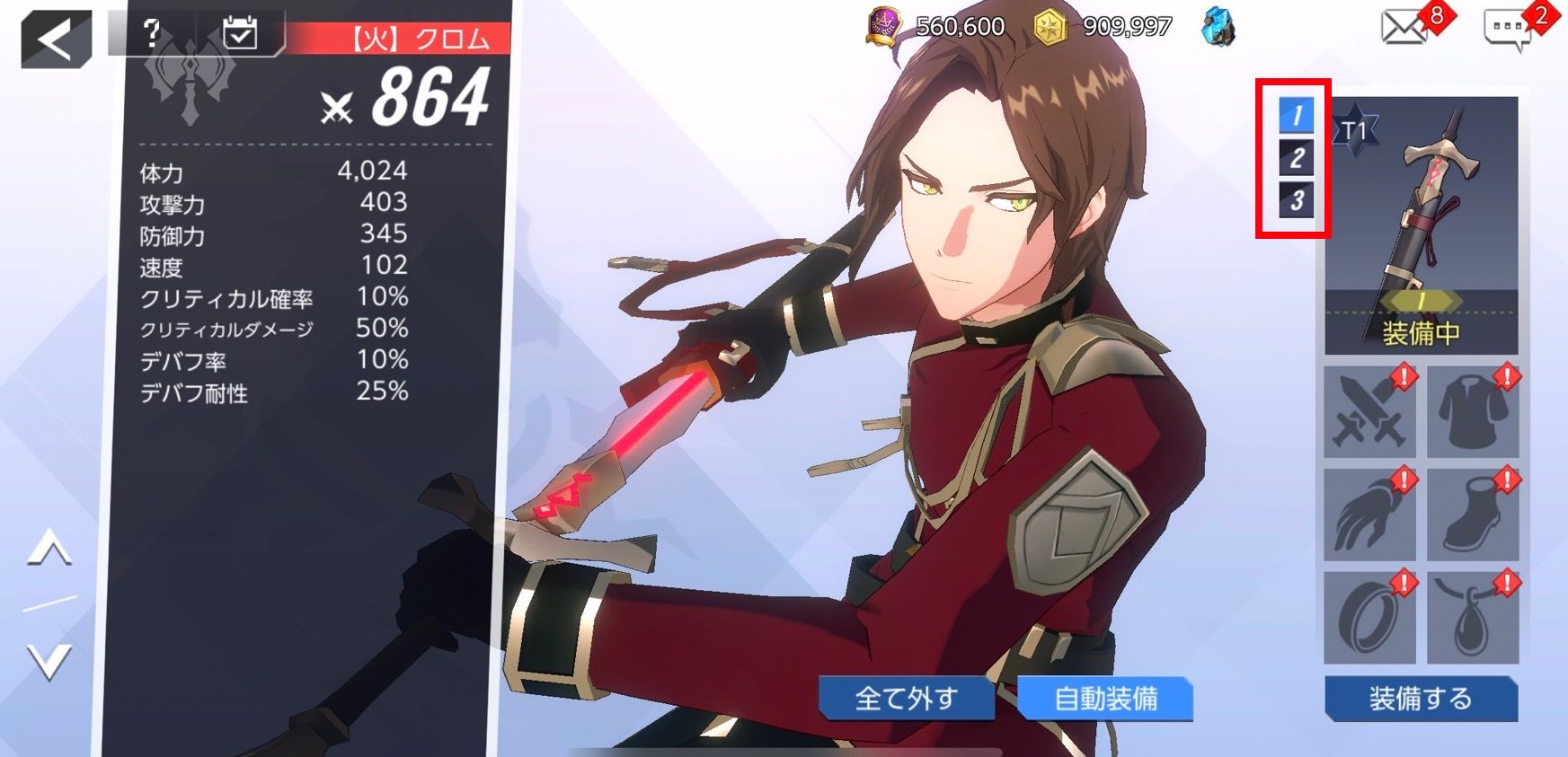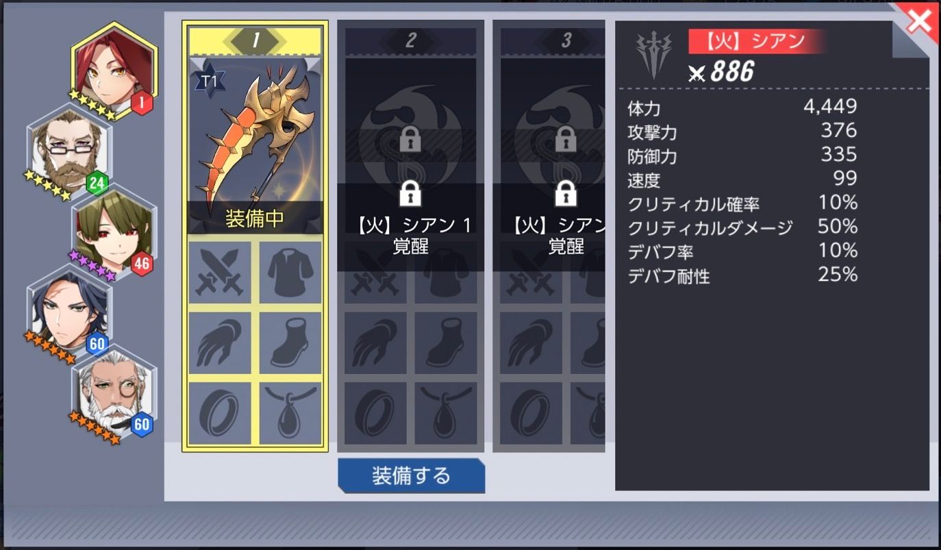- 装備プリセットは、各英雄毎に最大3つのスロットが用意されており、2番目、3番目のスロットは、英雄の覚醒によって解禁されます。