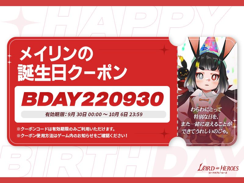 9月30日はメイリンの誕生日です!「誕生日クーポン」と「壁紙」🙊 そして、アプリ内でしか見ることができない記念ローディングイメージまで準備しました!💘