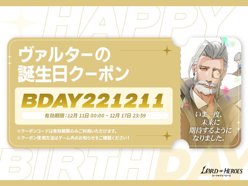 12月11日はヴァルターの誕生日です!「誕生日クーポン」と「壁紙」🙊 そして、アプリ内でしか見ることができない記念ローディングイメージまで準備しました!💘
