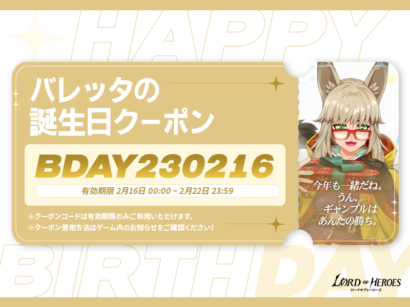 ❗誕生日クーポンは、2月16日00:00から使用可能です。忘れずにご使用ください。