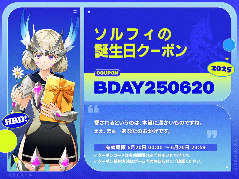 ソルフィの誕生日を迎え、バースデークーポンを用意しました。
