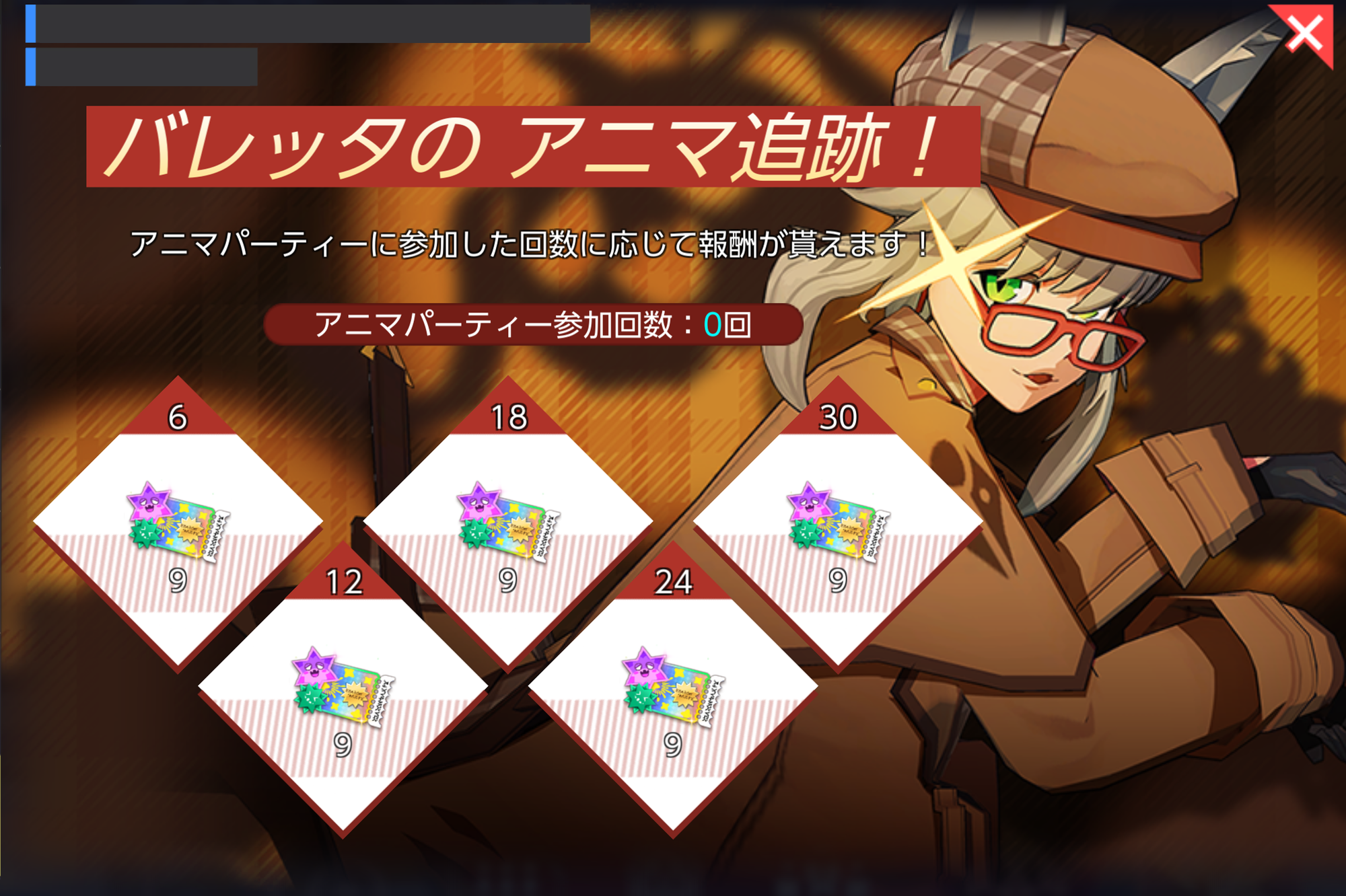 - アニマパーティーに参加した回数に応じて報酬が貰えます!