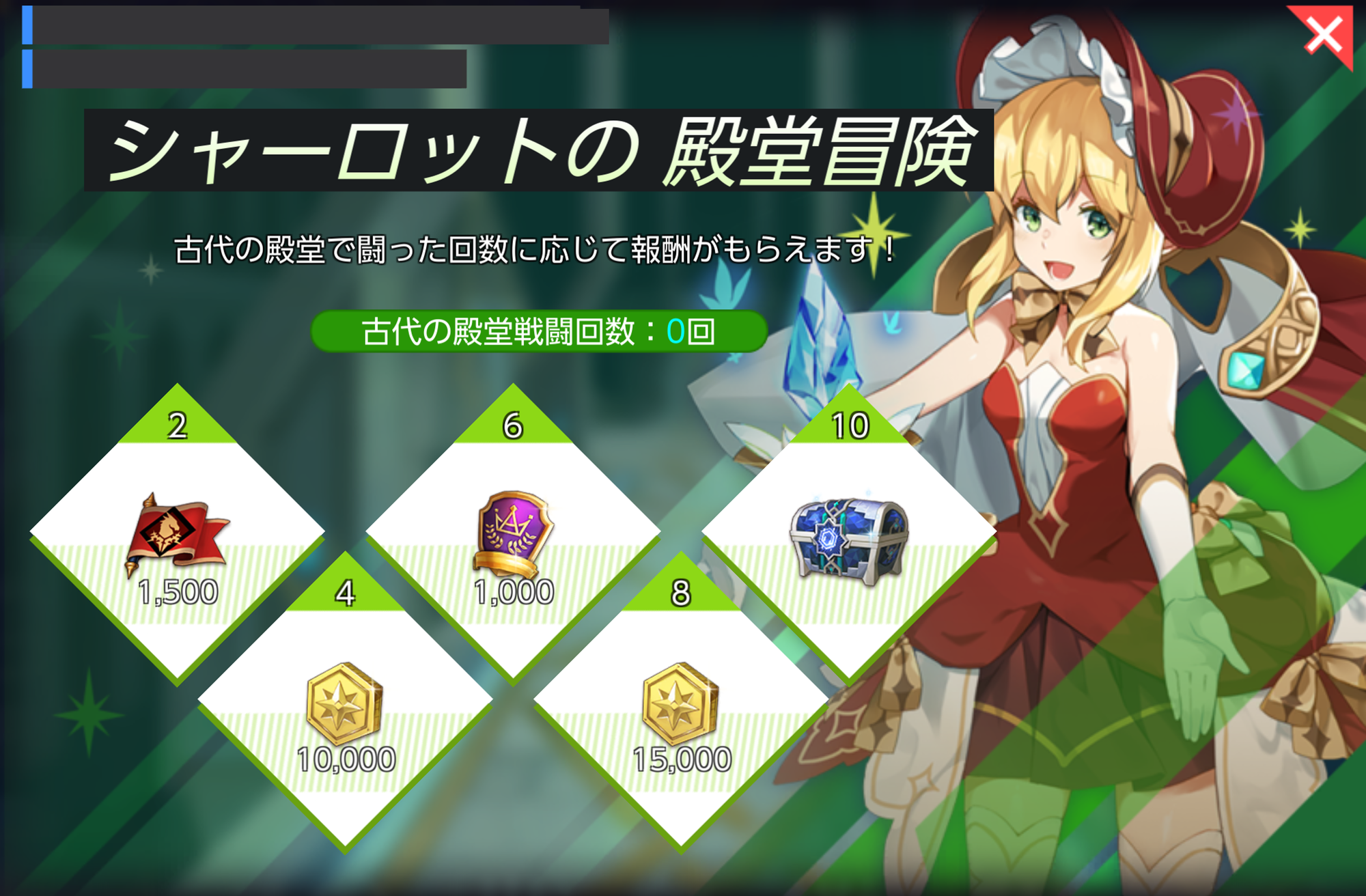 | アリーナ攻撃戦15回参加 | 名声 | 10,000 |