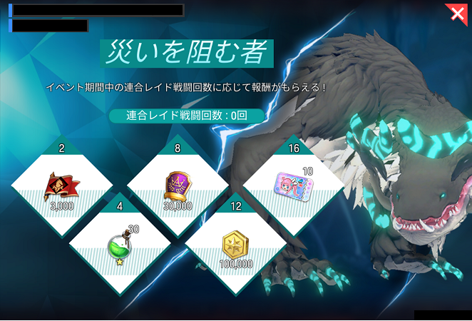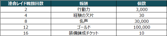 イベント期間中の連合レイド戦闘回数に応じて報酬がもらえます!