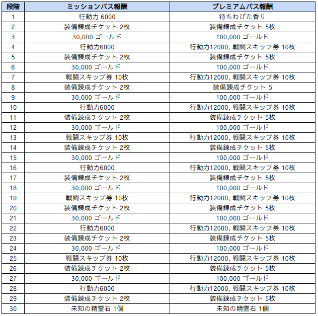 【ミッションパス及びプレミアムパス報酬のご案内】