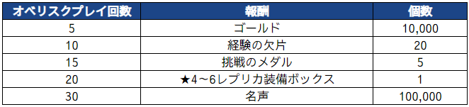 - イベント期間中、オベリスクに挑んだ回数に応じて報酬を獲得できます。
