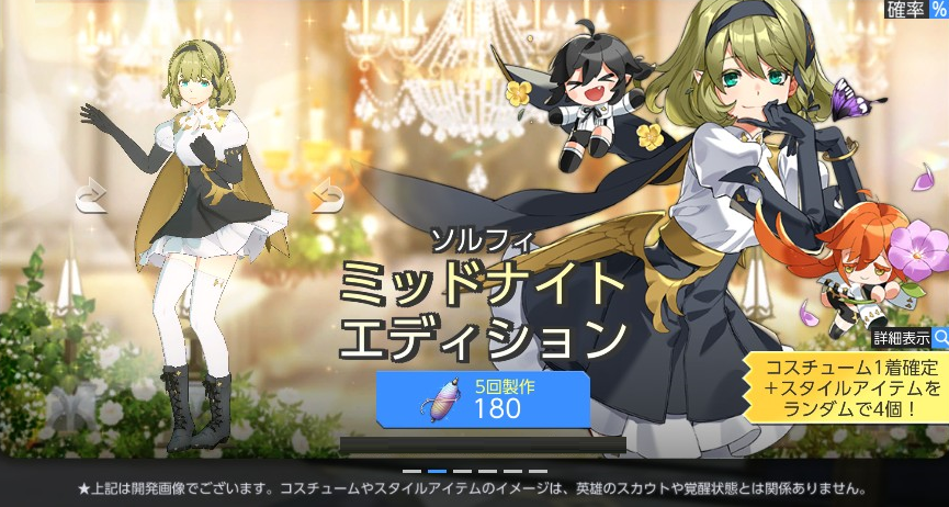 - 衣装室/マイレージショップにソルフィの【ミッドナイトエディション】各1種が追加されます。