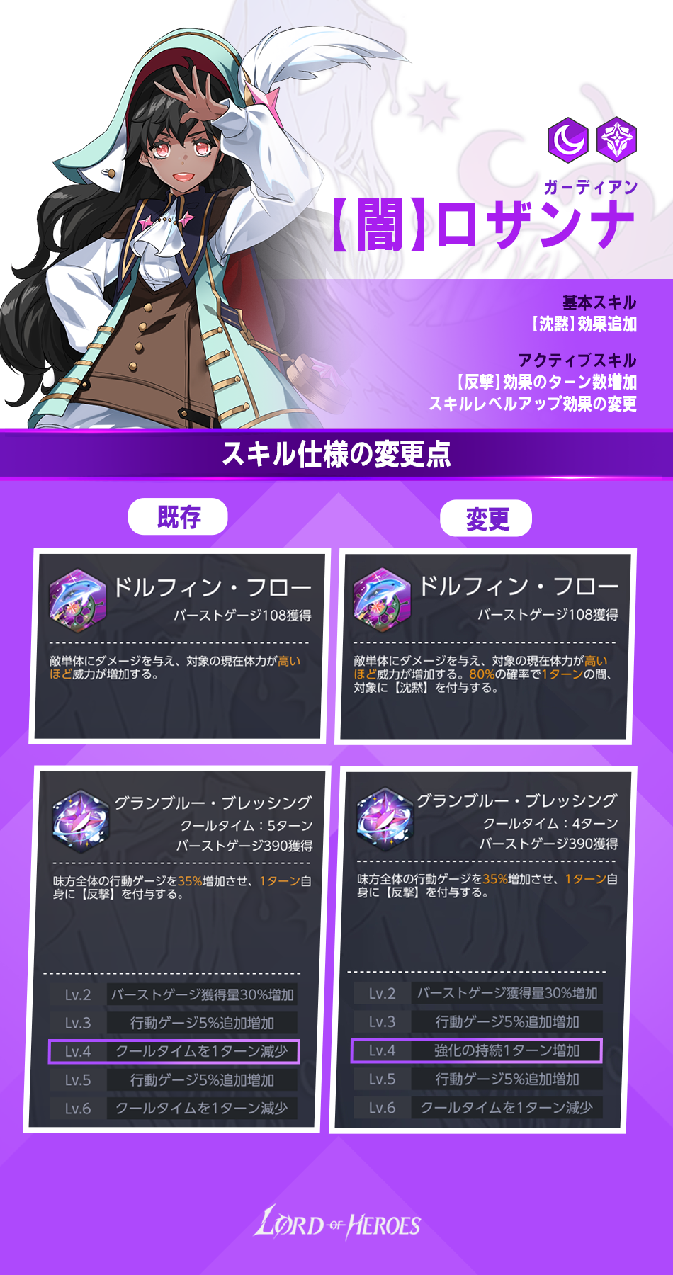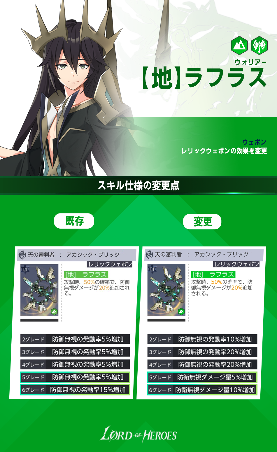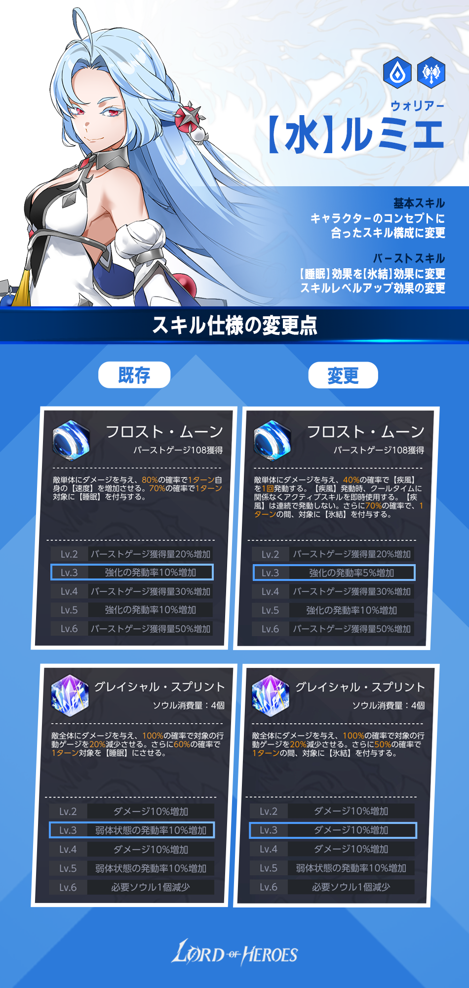 - バランス調整が行われる英雄:【水】ルミエ/【闇】ロザンナ/【火】ライレイ/【地】ザイラ/【地】ラフラス