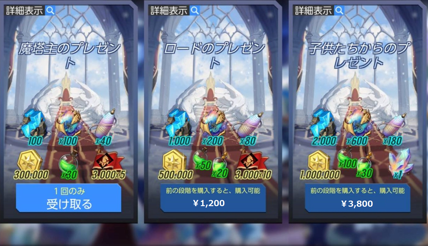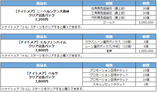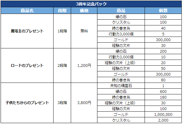 ※ 3周年記念パックは、前段階のパッケージを購入しなければ次の段階を購入できません。